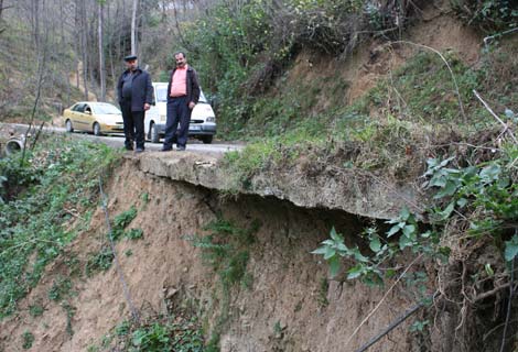 Köye ulaşımı sağlayan yolun 35 metrelik bölümünde yaklaşık olarak 6 ay önce meydana gelen heyelan nedeniyle, daha önce yine aynı tehlikeden ötürü betonla kaplanan yolun altı boşaldı.